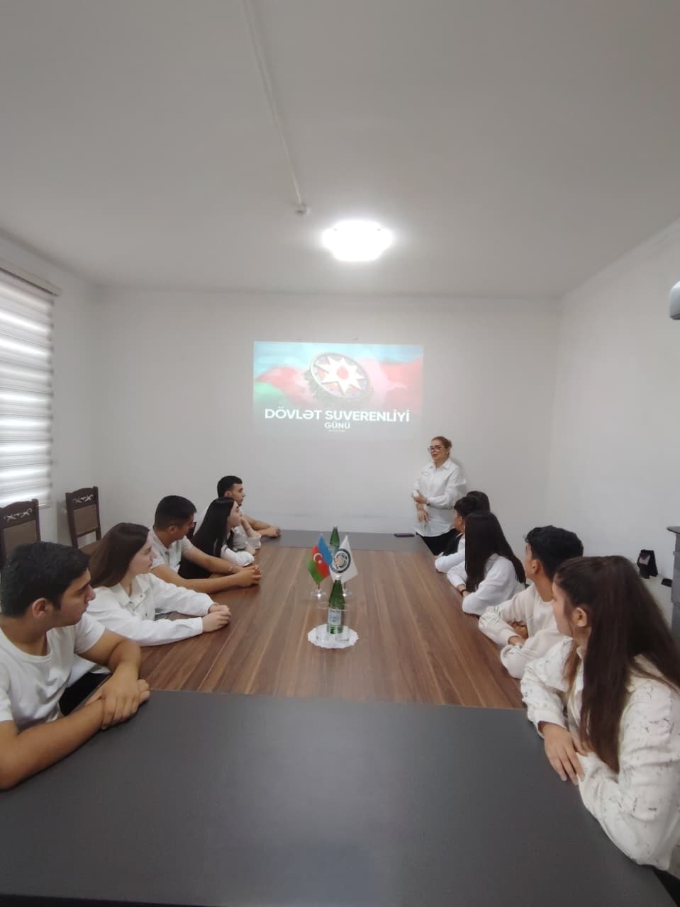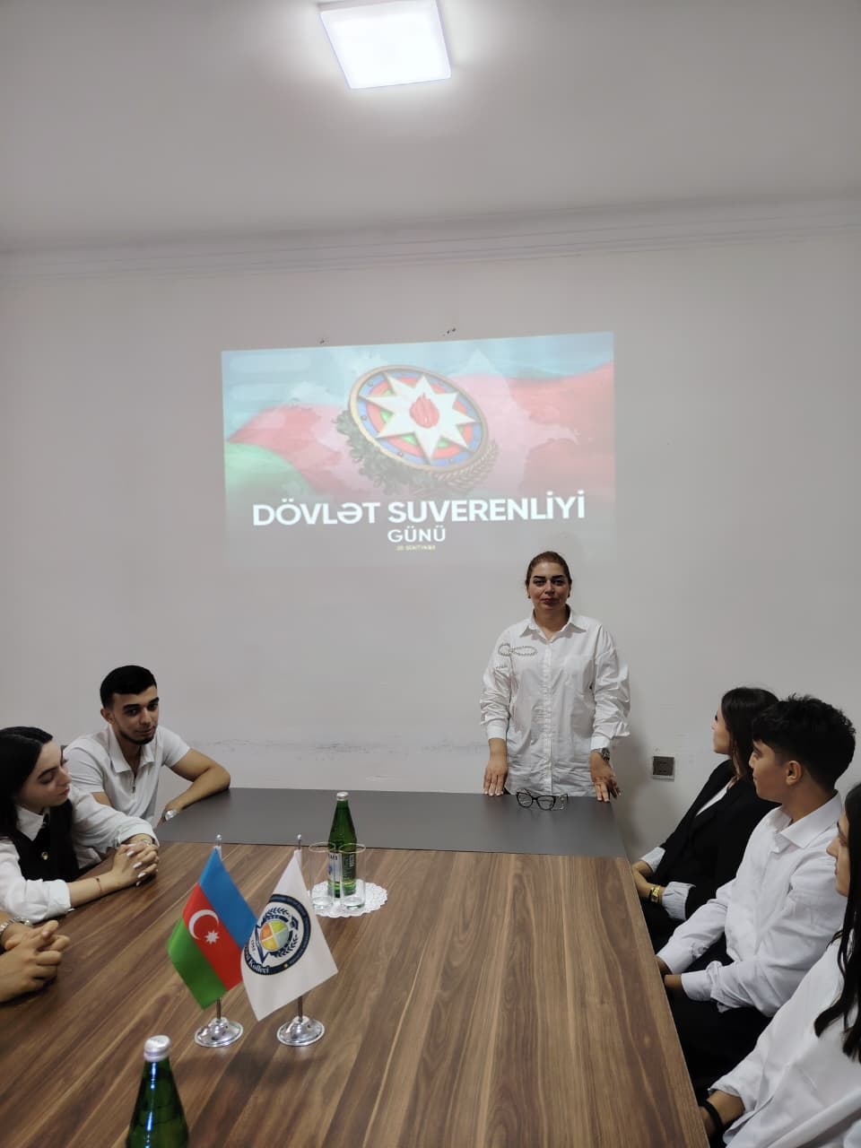 20 Sentyabr – Dövlət Suverenliyi Günü münasibətilə UNEC nəzdində Qida Sənayesi Kollecində dəyirmi masa təşkil olundu. Tədbirdə müəllim və tələbələr dövlətimizin müstəqillik yolunda keçdiyi tarixi mərhələləri müzakirə edərək, suverenliyin milli kimliyimiz üçün nə qədər əhəmiyyətli olduğunu vurğuladılar. Tələbələr gənc nəsil olaraq onlara düşən əsas vəzifənin bu dəyərləri qorumaq, inkişaf etdirmək və gələcək nəsillərə çatdırmaq olduğunu qeyd etdilər.