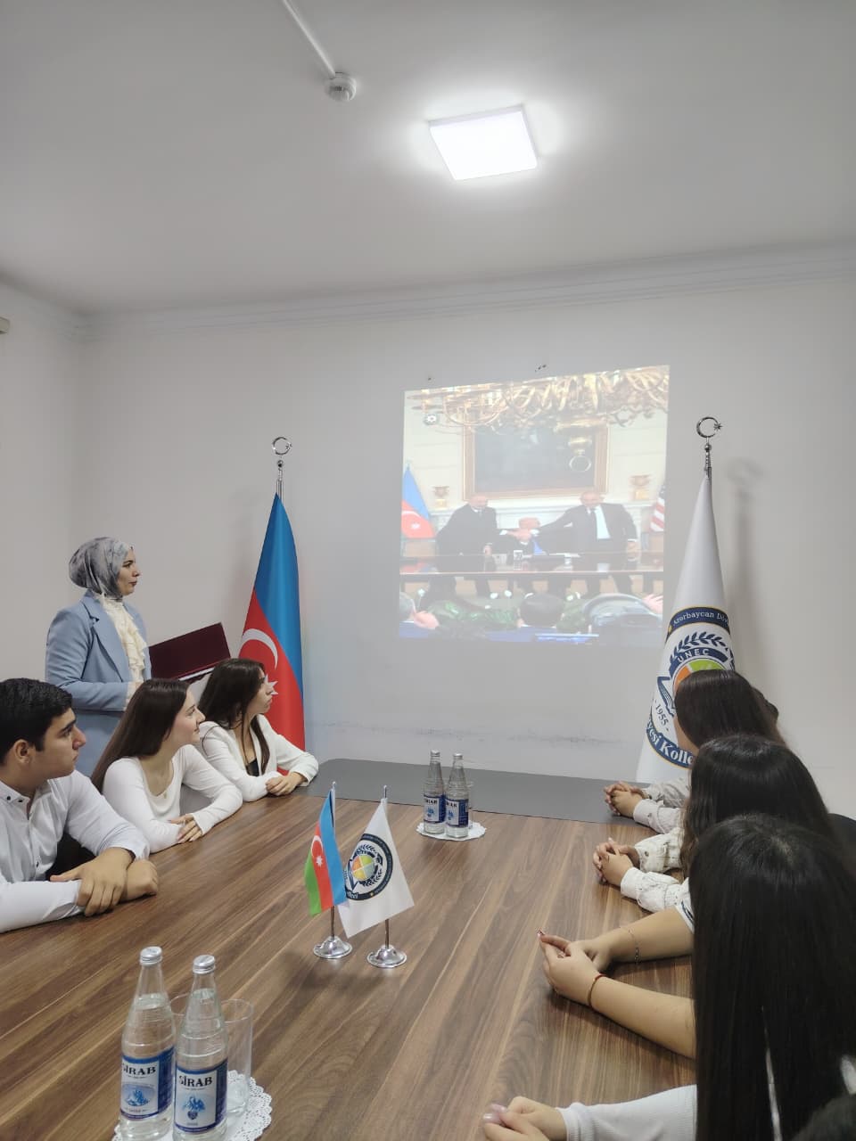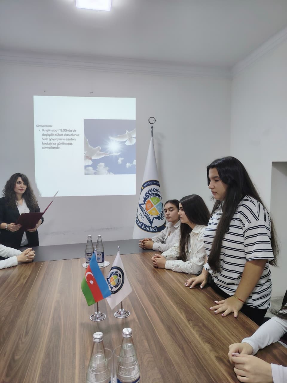 Bu münasibətlə UNEC nəzdində Qida Sənayesi Kollecində tələbə və müəllim heyətinin iştirakı ilə “Sülhün dəyəri” mövzusunda dəyirmi masa təşkil olunub. Tədbirdə sülhün bəşəri dəyər olaraq qorunmasının vacibliyi vurğulanıb, iştirakçılar öz fikir və mülahizələrini bölüşüblər.