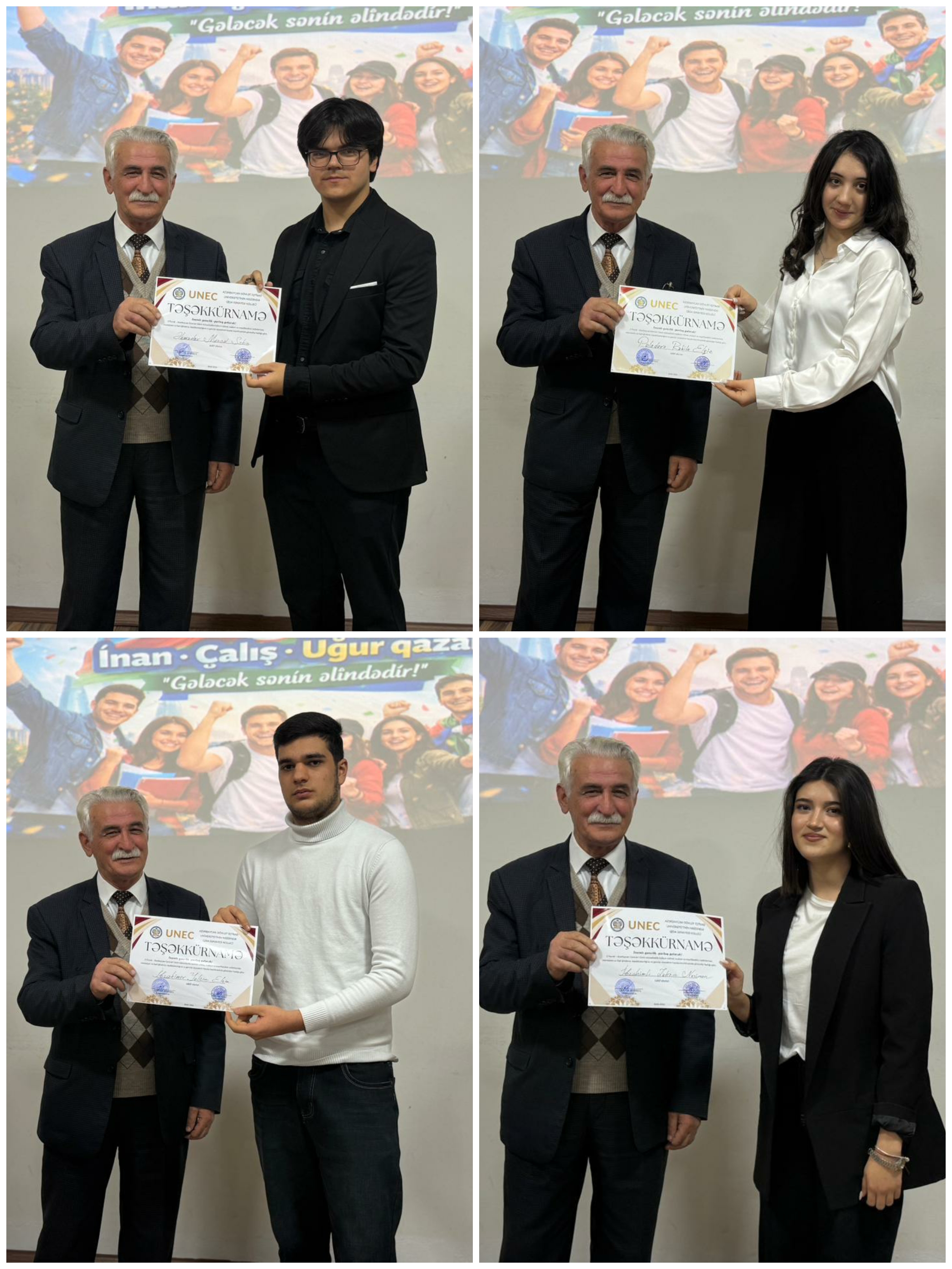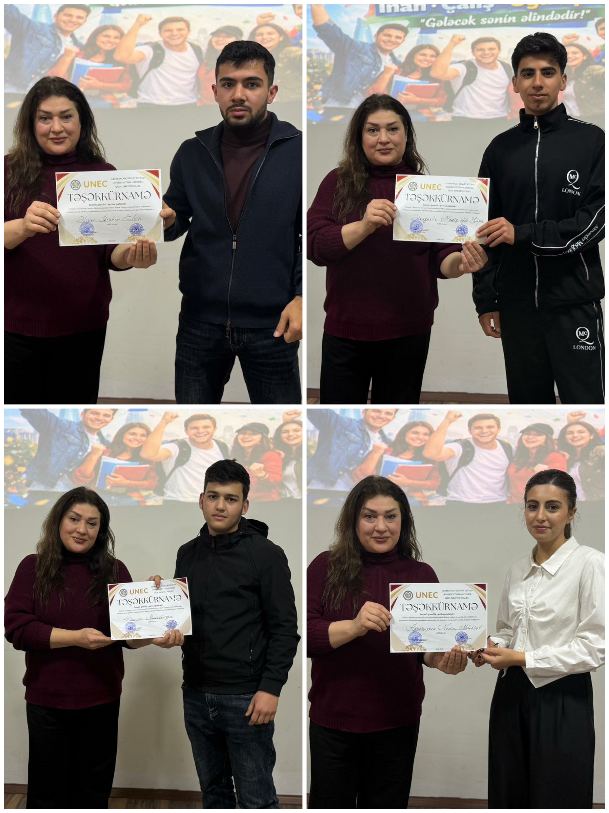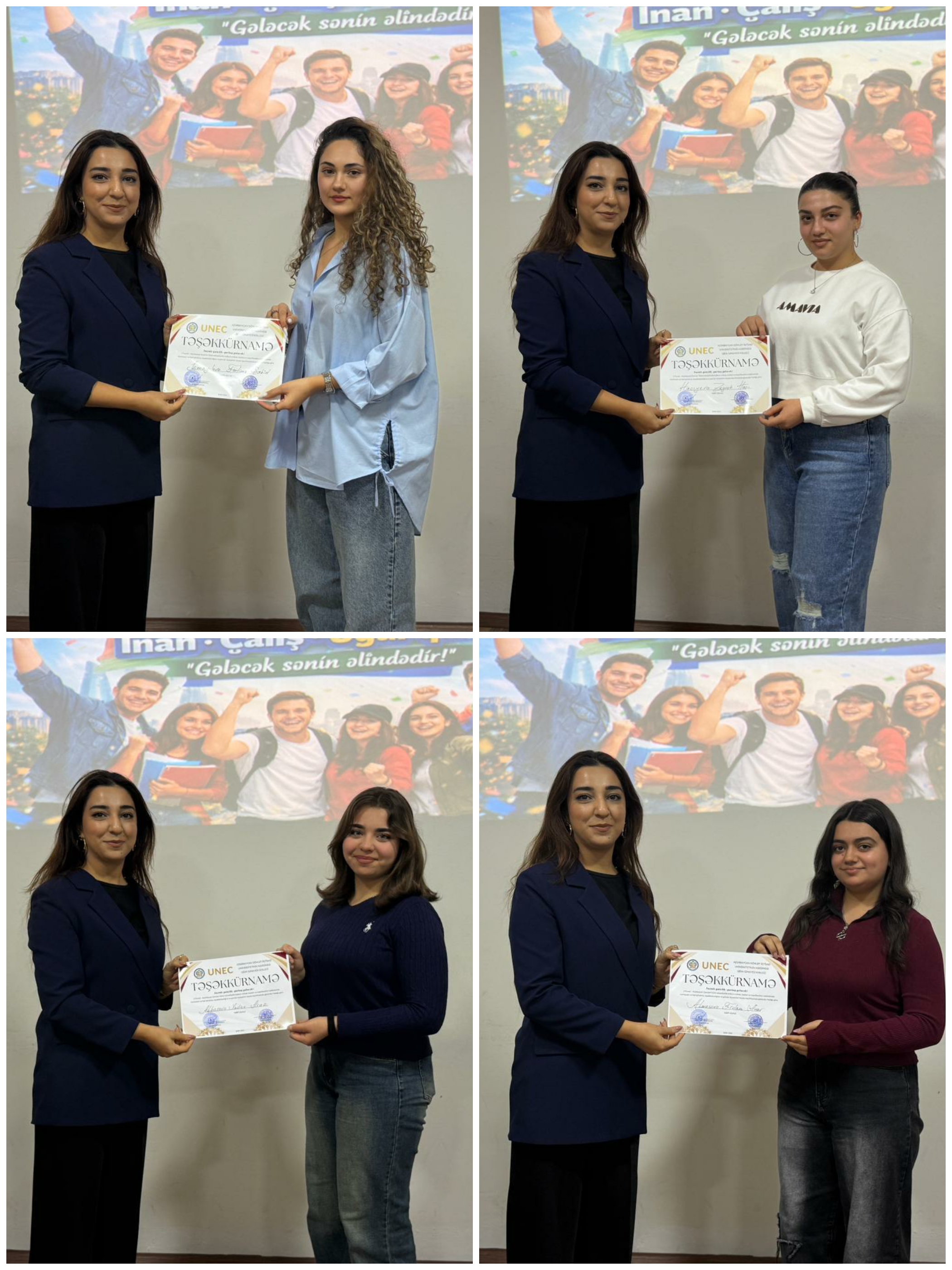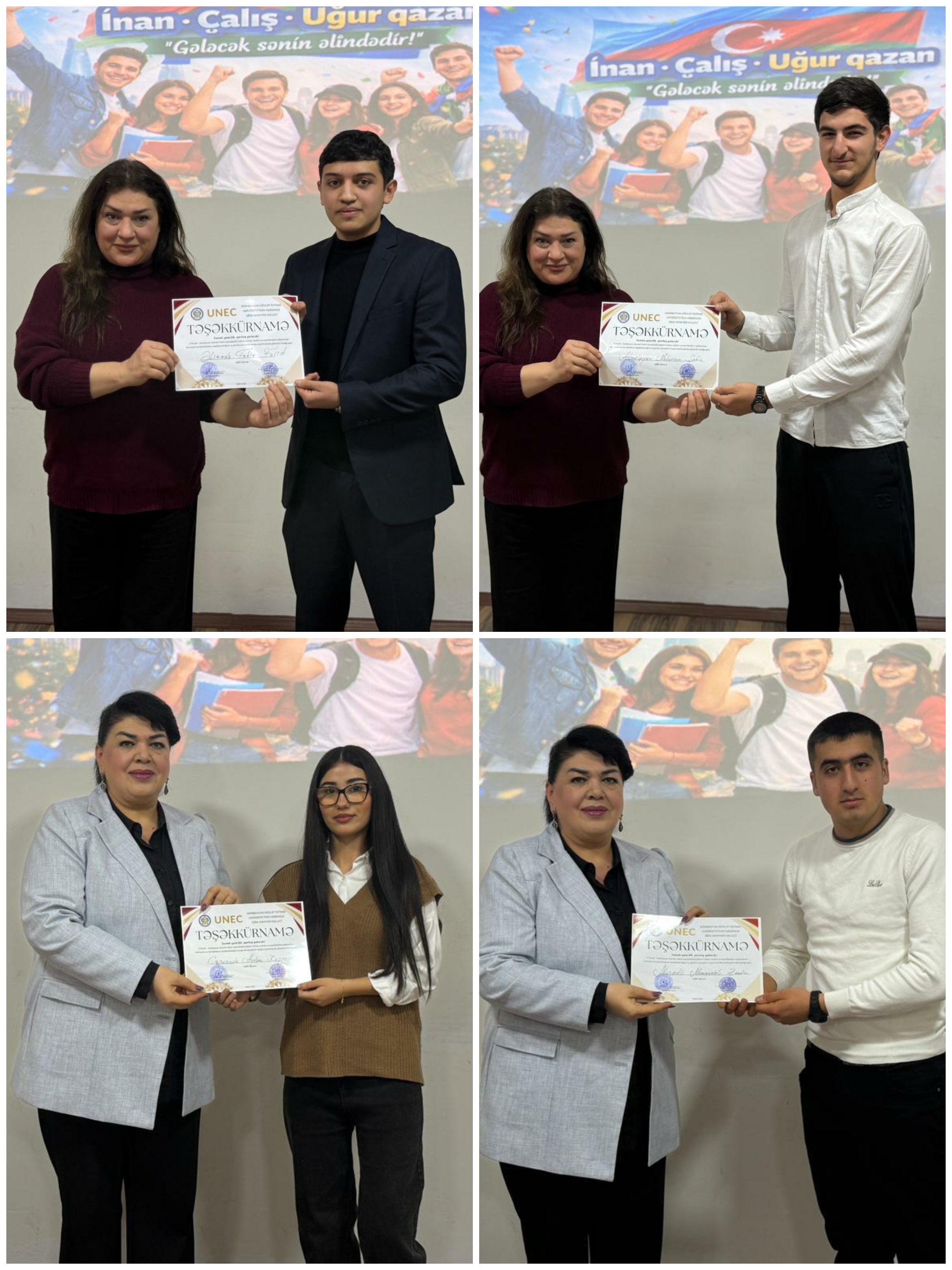 Sonda isə kollecin ictimai, mədəni və sosial həyatında, eləcə də keçirilən bütün tədbirlərdə daim fəallıq göstərən, təşəbbüskarlığı və nümunəvi davranışı ilə seçilən tələbələrə təşəkkürnamələr təqdim olunmuşdur. Bu cür tədbirlər gənclərin motivasiyasının artırılmasına, onların kollecin həyatında daha fəal iştirakına və gələcək uğurlarına mühüm töhfə verir.