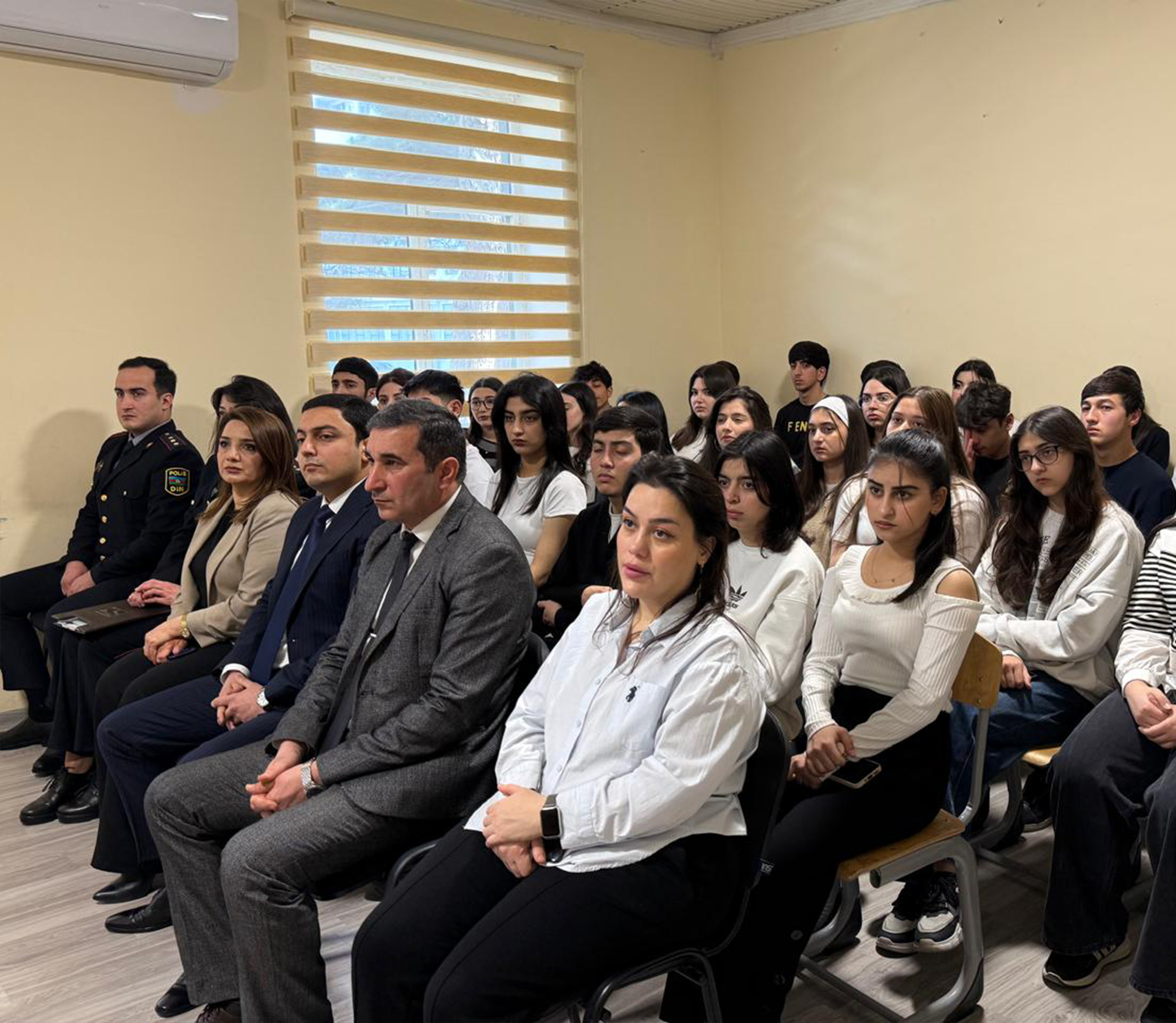 Azərbaycan Dövlət İqtisad Universitetinin (UNEC) nəzdində Qida Sənayesi Kollecində Nizami rayon Polis Veteranları Şurasının sədri Nazim Qnyazov və Firdovsi Bayramov, Bakı şəhəri Nizami rayon Polis İdarəsinin 25-ci polis şöbəsinin rəis müavini, polis-polkovnik-leytenantı Anar Zeynalov, yetkinlik yaşına çatmayanlarla iş üzrə inspektorlar – polis kapitanı Günay Heydərova və polis baş leytenantı Mirrəşad Mirzəyev, Nizami rayon prokurorunun köməkçisi, ədliyyə müşaviri Ramil Səfərovun iştirakı ilə “Narkomaniyaya yox deyək!”, “Erkən nigahın fəsadları”, AR qanunvericiliyinə əsasən “hərbi xidmətə çağırış, hərbi xidmətdən azadetmə və möhlət verilməsinin şərtləri, eləcə də hərbi xidmətə yararsızlığın tibbi meyarları” mövzusunda maarifləndirici tədbir keçirilmişdir.